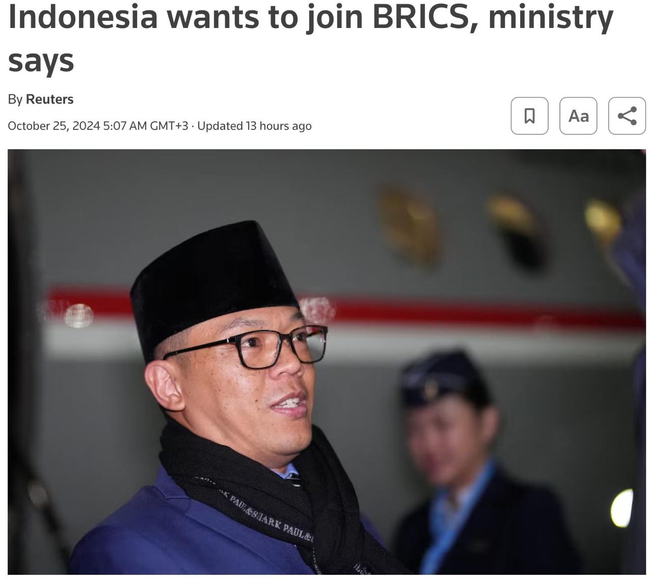 Индонезия стала еще одной страной, которая хочет присоединиться к объединению БРИКС, партнерами которого по итогам саммита в Казани стали 13 государств.
