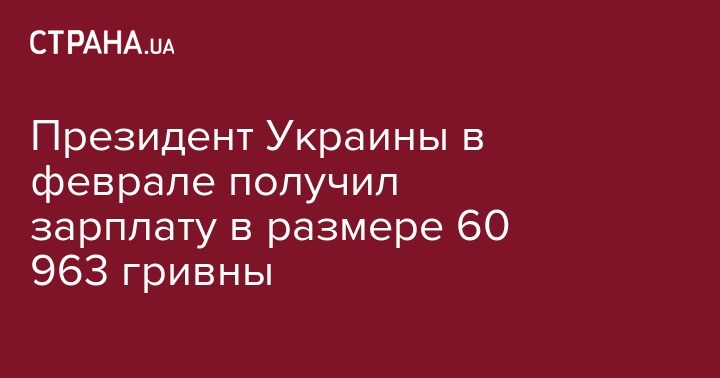 Заработная плата Президента Петра Порошенко за февраль составила 60 963 гривны. Об этом говорится в ответе Государственного управления делами на запрос "Украинских Новостей".
