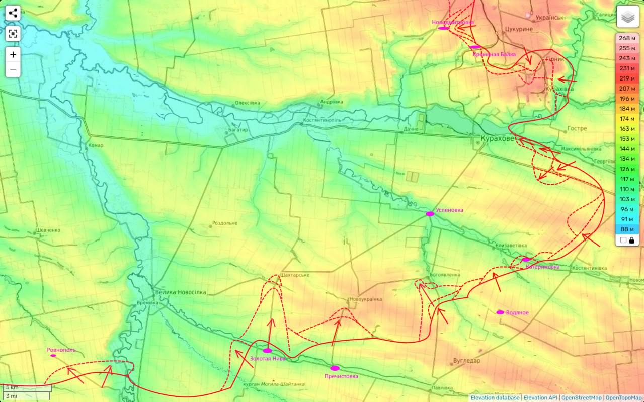 Отметим, военный паблик Deep State заявил сегодня, что Россия захватила Левадное. Продвинувшись также еще на нескольких участках поблизости.