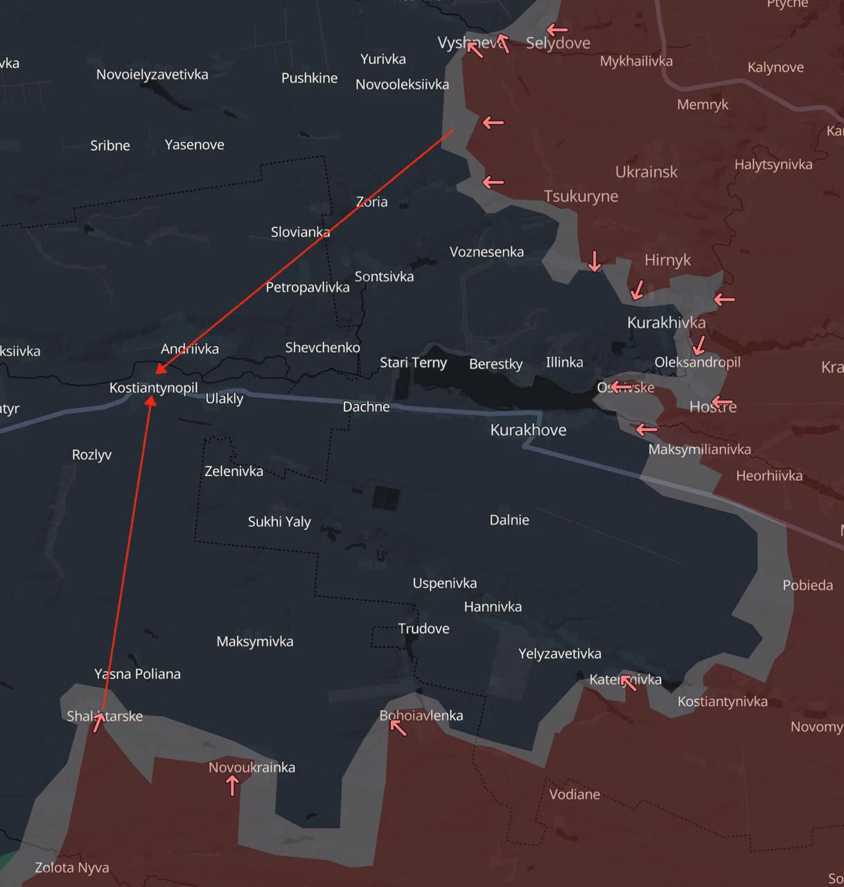 Также взятие Седидово открывает возможность россиянам нанести удар на запад к границе с Днепропетровской областью (до которой 35 километров по прямой). При этом обходя с юга крупные города вроде Покровска и Павлограда.