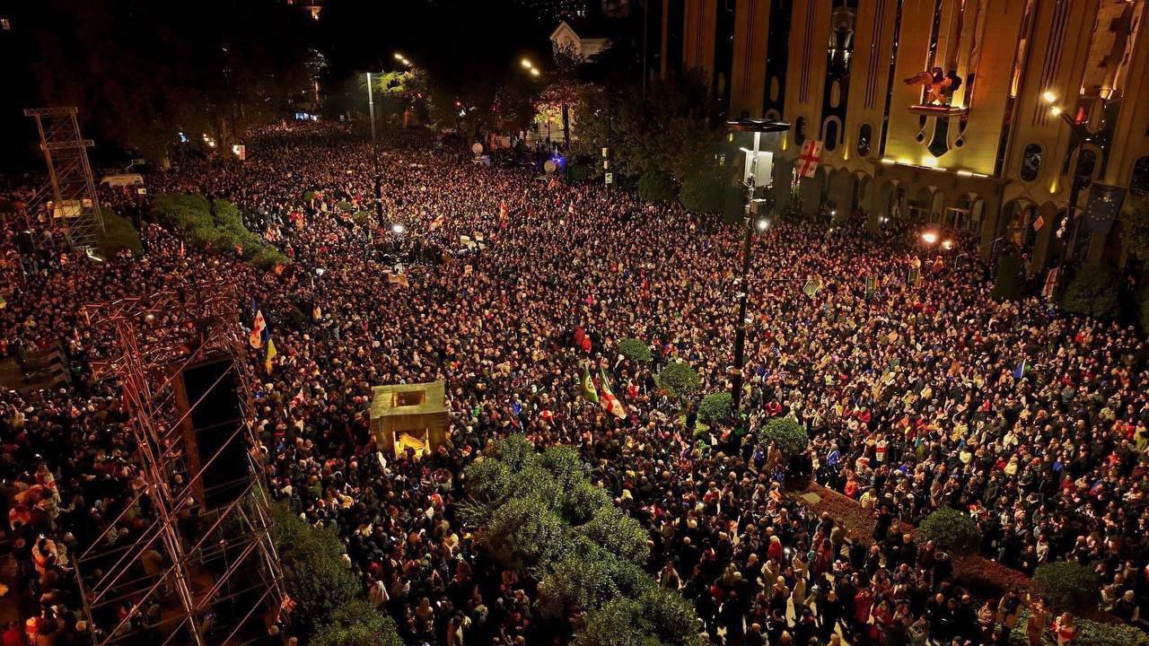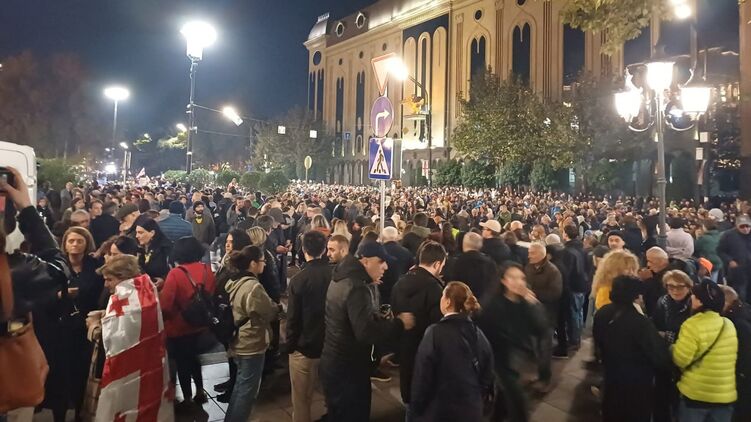 Акция протеста в Тбилиси завершилась исполнением гимнов ЕС и Грузии, после чго протестующие начали расходиться.