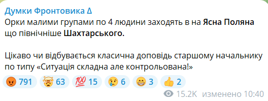 Также российские паблики утверждают, что их войска заняли Ясную Поляну к юго-западу от Курахово.