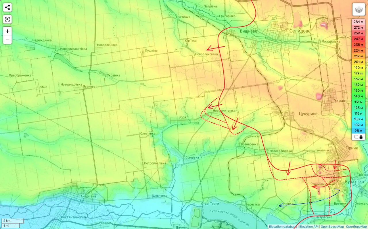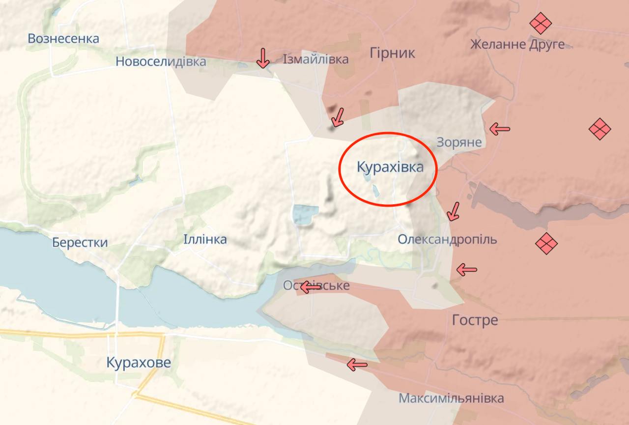 Российские паблики пишут, что Кураховка частично под их контролем (некоторые телеграм-каналы утверждают, что РФ контролирует уже большую часть населенного пункта, а подразделения ВСУ уходят оттуда, опасаясь окружения, но подтверждения этому пока нет). Карта Deep State по состоянию на вчера продвижений РФ на этом участке не показывает.