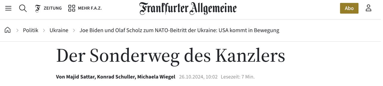 Об этом пишет немецкая газета Frankfurter Allgemeine Zeitung со ссылкой на источники в материале под заголовком "Особый путь канцлера".