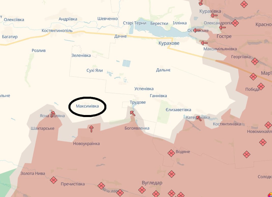 22.48 У россиян есть продвижение в Максимовке (юго-западнее Курахово), сообщил военнослужащий ВСУ с позывным «Мучной».
