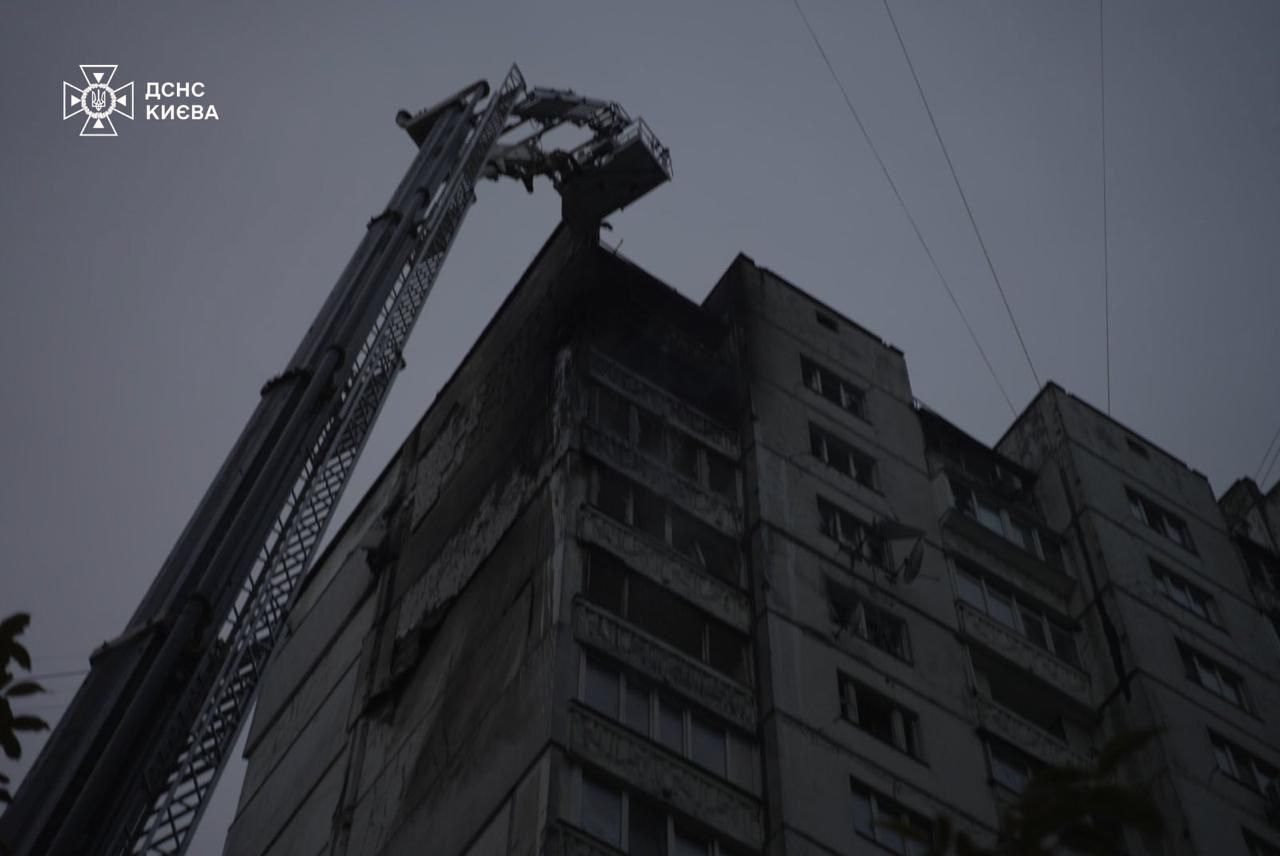 В результате атаки БпЛА произошло возгорание и частичное разрушение в квартирах на 15 и 16 этажах, 16-этажного жилого дома в Святошинском районе города.