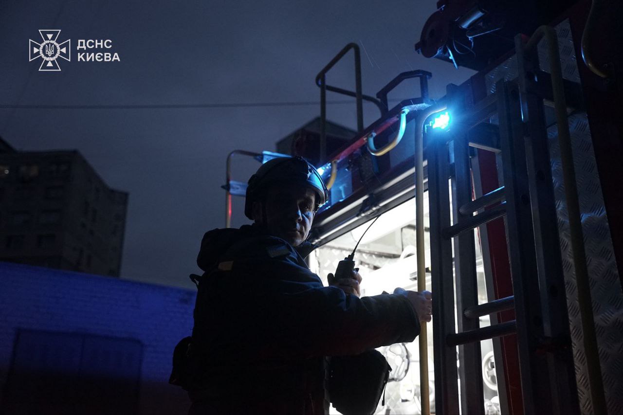 Ночная атака беспилотников на Киев. Обломки сбитых дронов вызвали пожар в многоэтажном доме