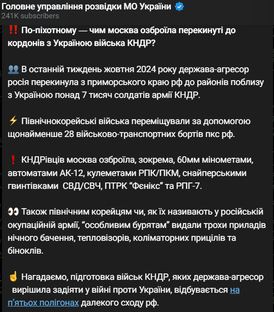 В последнюю неделю октября Россия перебросила из приморского края к украинским границам более 7 тысяч солдат КНДР.