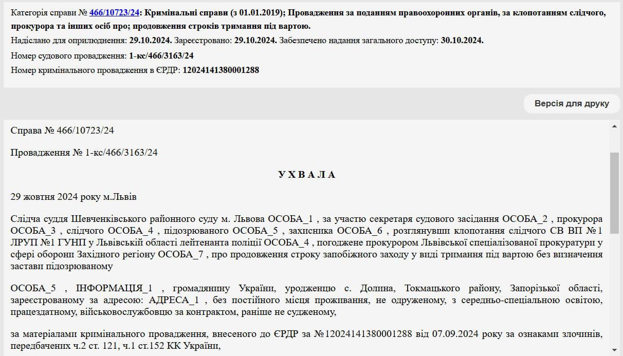 Согласно материалам дела, обнародованным в судебном реестре, событие произошло ночью 6 сентября 2024 года в одном из двухзвёздочных отелей Львова.