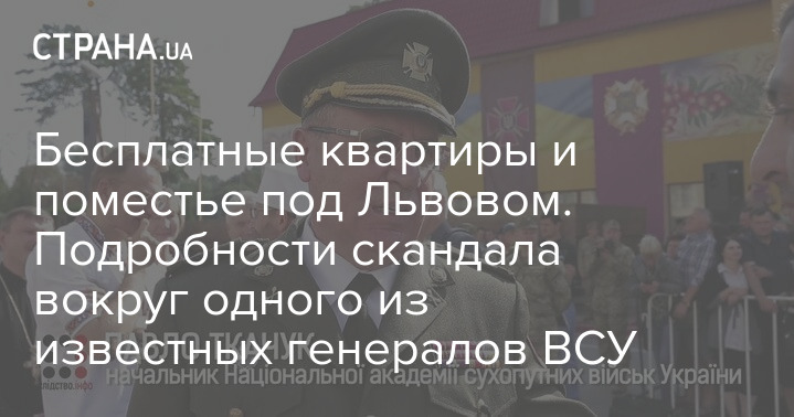 Начальник Национальной академии Сухопутных войск ВСУ Павел Ткачук оформил бесплатно на себя несколько квартир, а живёт теперь в роскошном поместье подо Львовом.