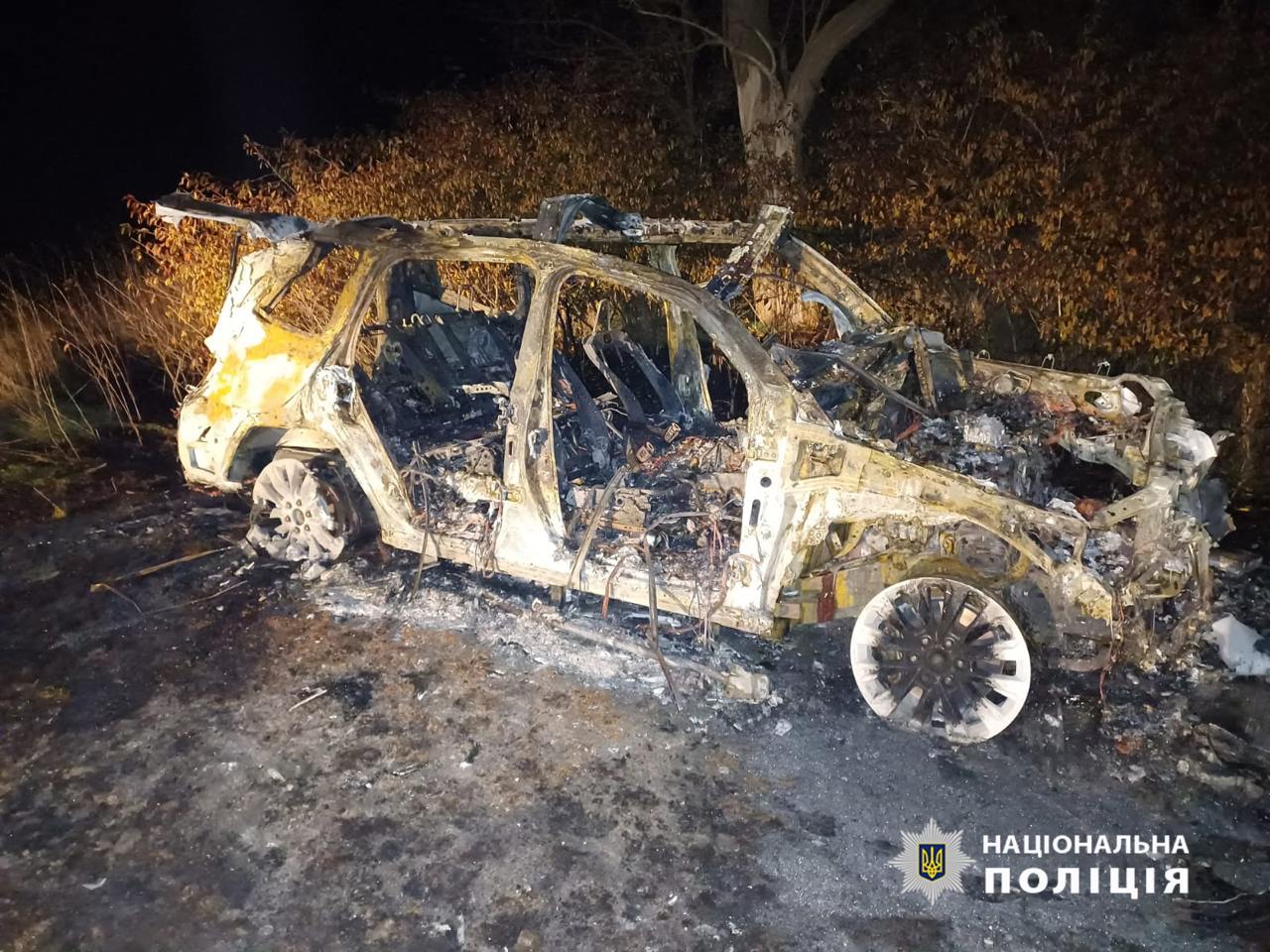 На опубликованных полицией фото с места ДТП видно, что автомобиль, которым управлял Мамоян, полностью сгорел.