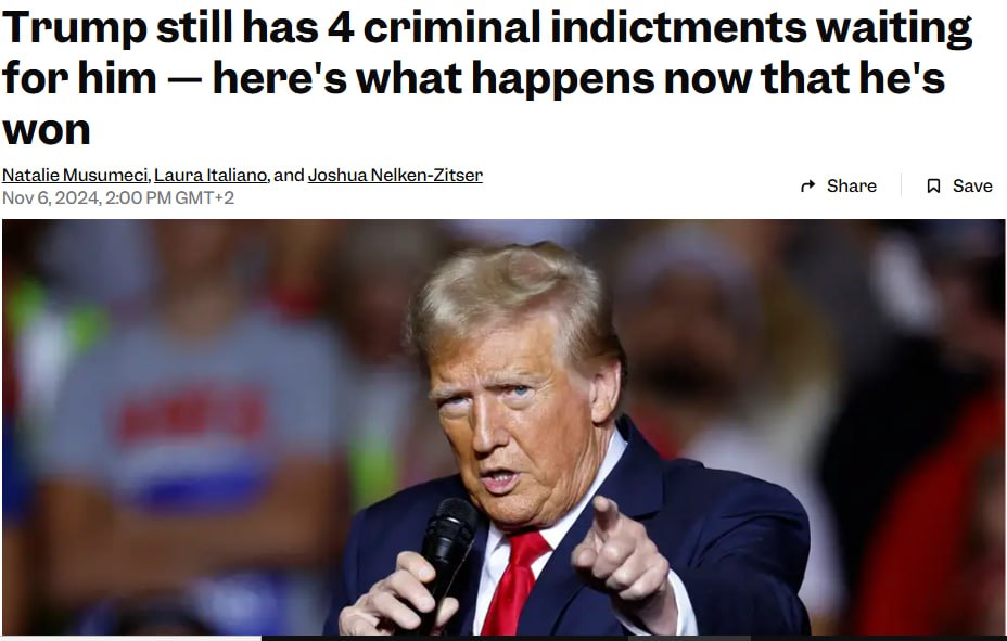22.23 Избранный президент Трамп может избежать наказаний за все четыре расследуемых против него дела, пишет Business Insider.