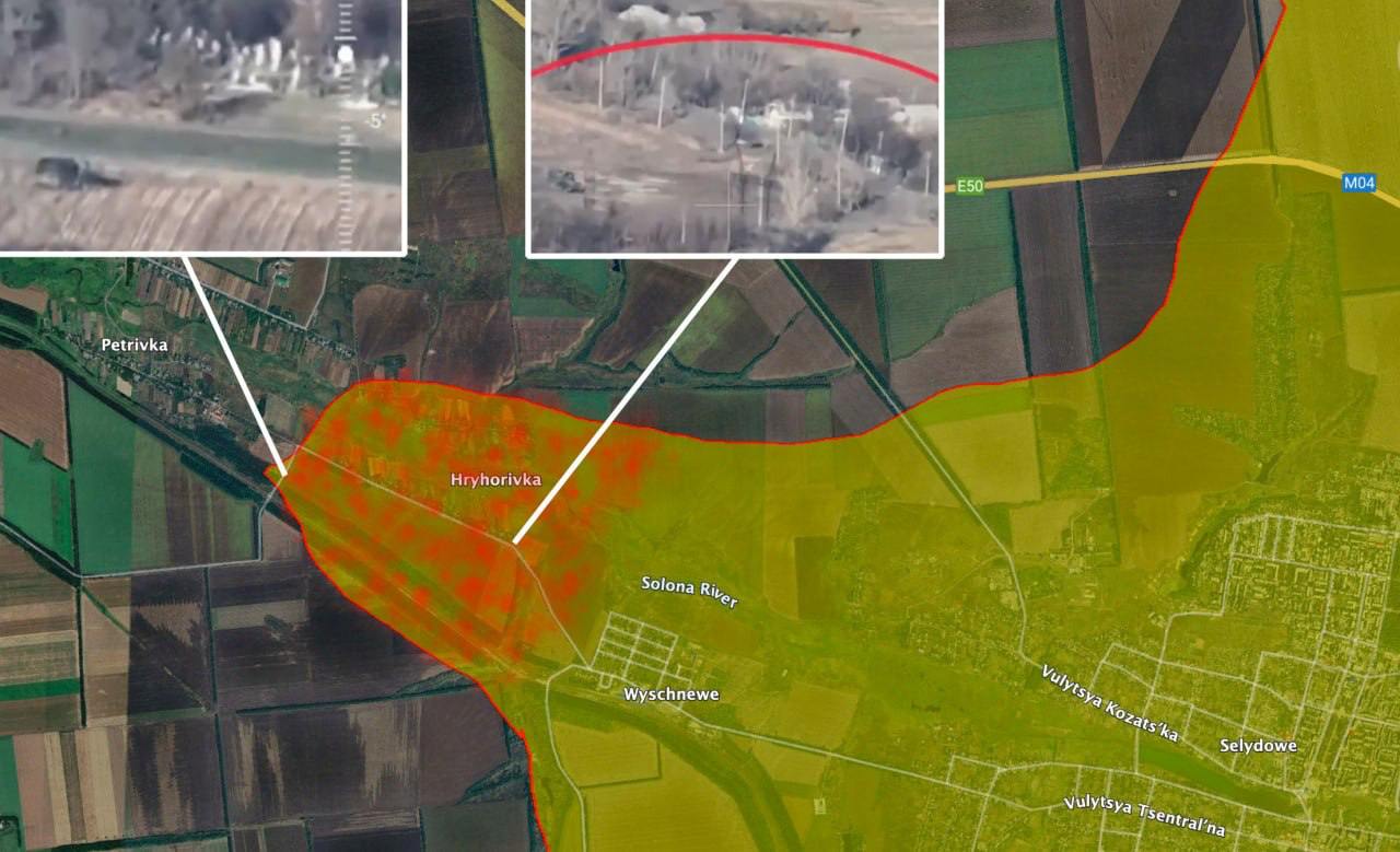 Со ссылкой на геолоцированные кадры из российских телеграм-каналов журналист заявил, что россияне уже захватили село Григоровка западнее Селидово и атакует Петровку. С этого участка до Днепропетровской области россиянам остался 21 километр, отметил Репке.