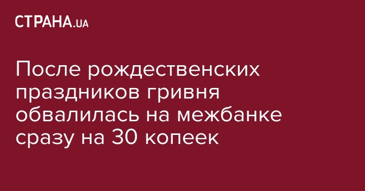 Курс гривны на межбанковском валютном рынке во вторник резко упал на 30 копеек - до 26,65 грн/$1 с 26,35 грн/$1 к завершению торгов в предыдущий рабочий день. Об этом сообщает "Интерфакс-Украина".