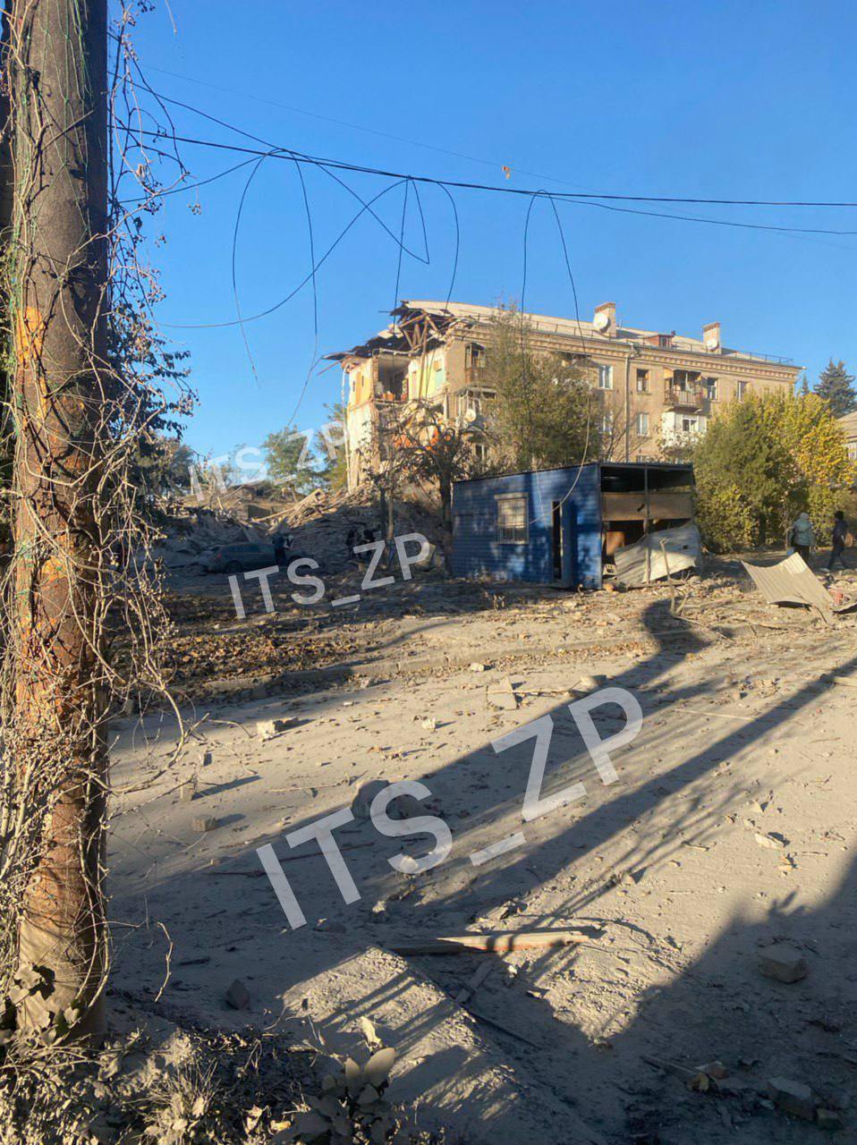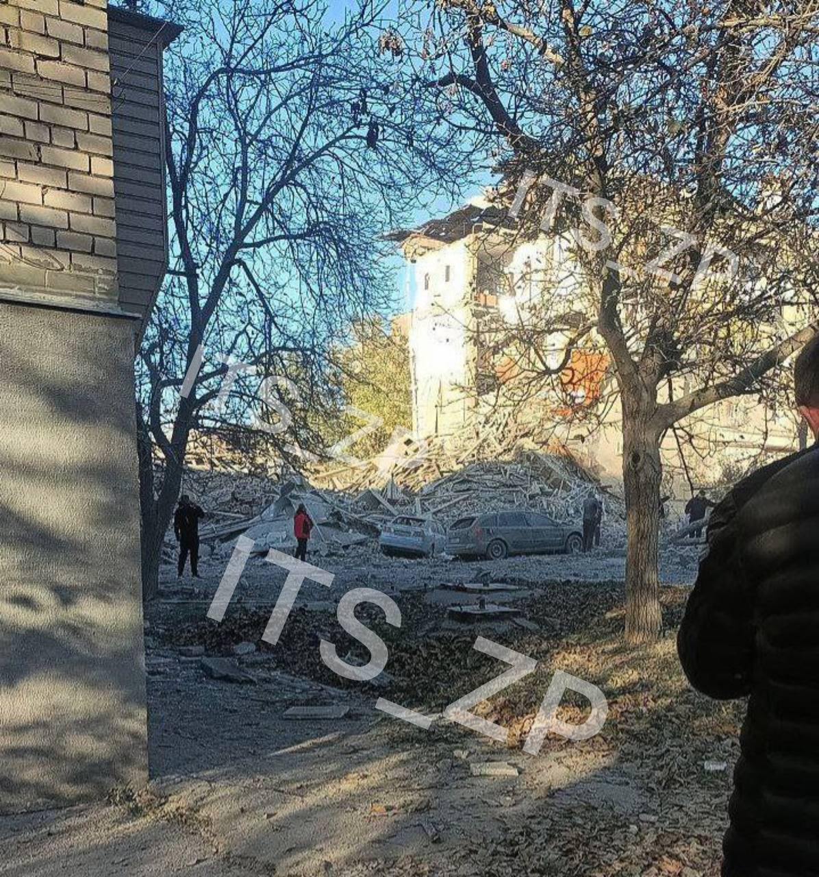 15:15 Еще фото из Запорожья. Часть здания уничтожена с первого по последний этаж.