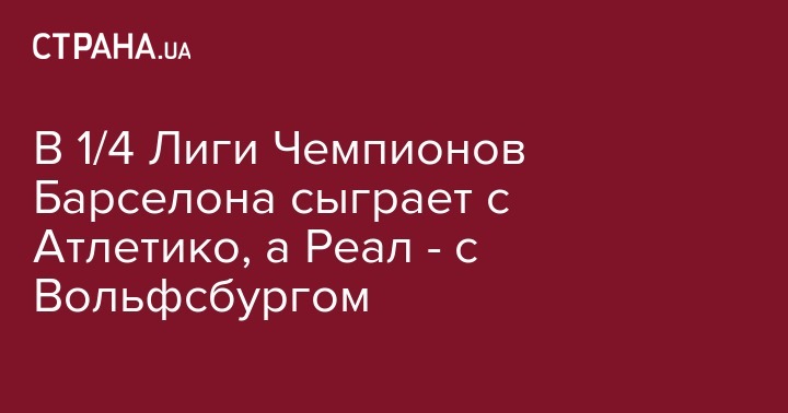 В 1/4 Лиги Чемпионов Барселона сыграет с Атлетико, а Реал - с Вольфсбургом
