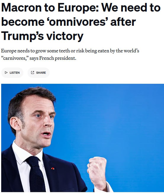 "Больше не может быть травоядной". Макрон считает, что после избрания Трампа Европа должна измениться