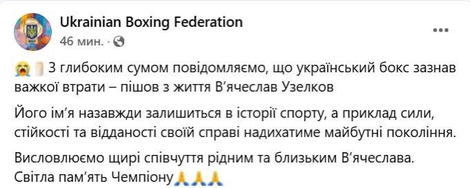Сегодня, 9 ноября, умер известный украинский боксёр Вячеслав Узелков. Ему было 45 лет.