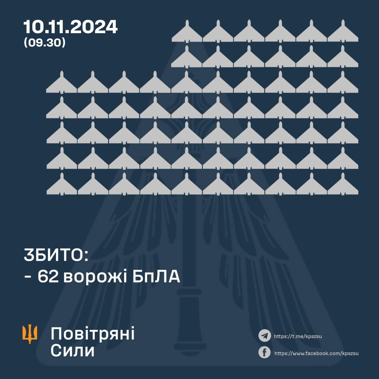 67 вражеских беспилотников локационно потеряно в разных регионах, еще 10 российских БПЛА вышли из воздушного пространства Украины.