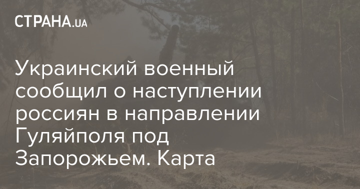 Украинский военнослужащий Станислав Бунятов сообщил о наступлении российских войск в направлении Гуляйполя Запорожской области.