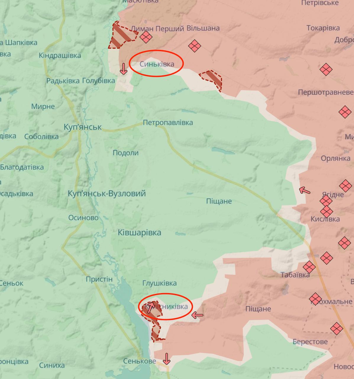 С севера продвижение в двух местах по флангам Синьковки. Видимо, россияне попытаются обойти ее с двух сторон.