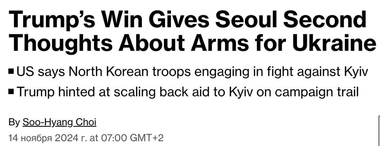 Южная Корея может отказаться от намерения поставлять оружие Украине из-за победы Трампа - Bloomberg