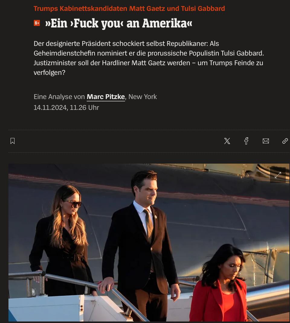"Гетц должен возглавить то самое ведомство со штатом около 110 000 сотрудников, которое до сих пор ведет судебные разбирательства против десятков участников штурма Капитолия, которым он симпатизирует. То самое ведомство, которое контролирует 94 прокурора США по всей стране и до сих пор ведет расследование в отношении осужденного преступника Трампа. Во время предвыборной кампании Трамп неоднократно заявлял, что хочет превратить свой второй срок в вендетту против всех своих врагов. Выбор генерального прокурора является самым важным кадровым решением в этом отношении — ведь он курирует такие следственные органы, как Федеральное бюро расследований. Это, пожалуй, самая взрывоопасная кандидатура Трампа на сегодняшний день", - пишет издание.