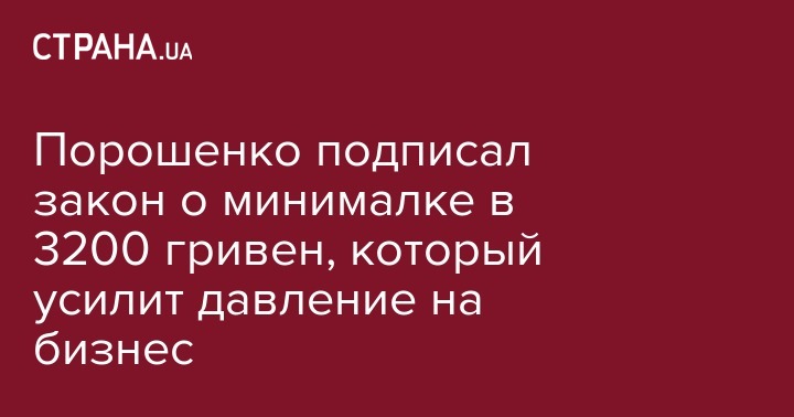 Президент Петр Порошенко подписал закон №5130 "О внесении изменений в некоторые законодательные акты Украины", который по инициативе правительства с 1 января 2017 года повышает минимальную заработную плату в Украине вдвое – до 3200 гривен в месяц. Об этом сообщает "Интерфакс-Украина"
