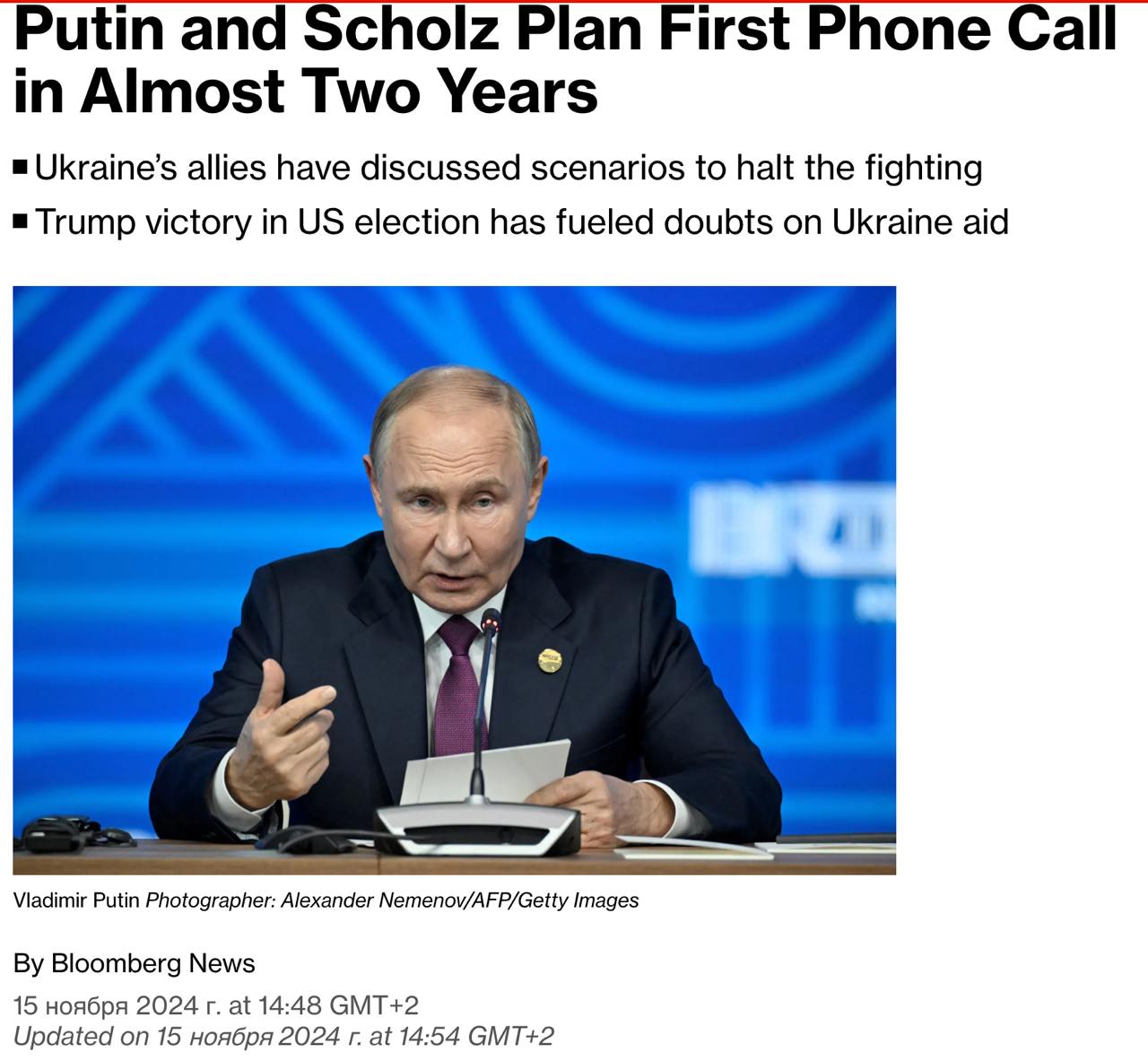11 ноября канцлер ФРГ заявлял, что собирается "вскоре" провести первые переговоры с Путиным.