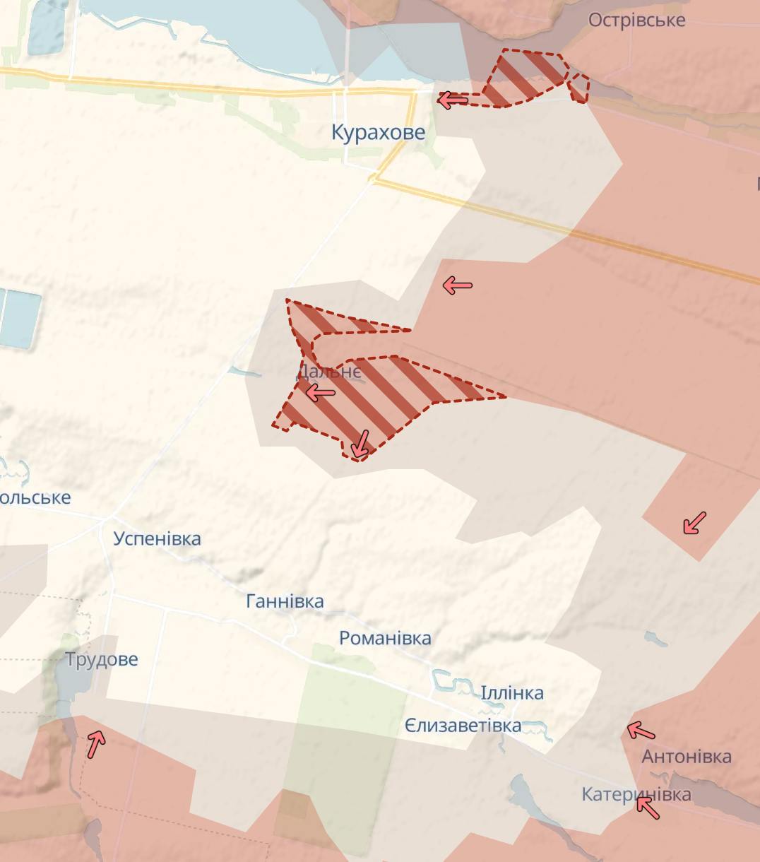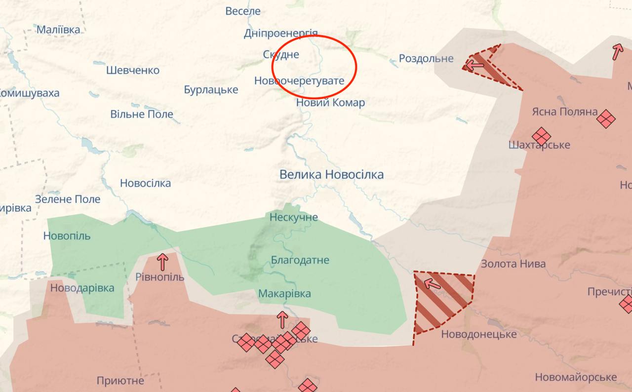 Как показывает карта Deep State, армия РФ продвинулась на запад со стороны Ясной Поляны в сторону Роздольного. Также есть продвижение у Новодонецкого непосредственно в сторону Великой Новоселки.