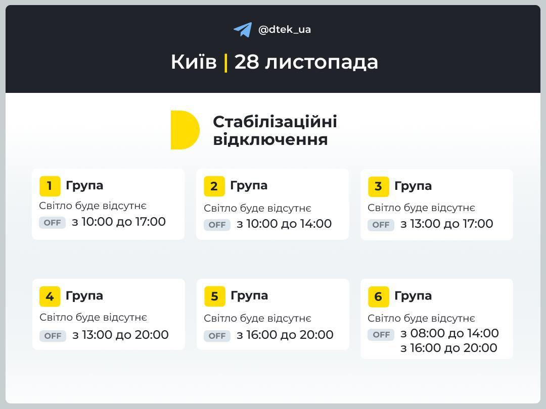 18:51 График отключений света на завтра опубликовало "Укрэнерго".