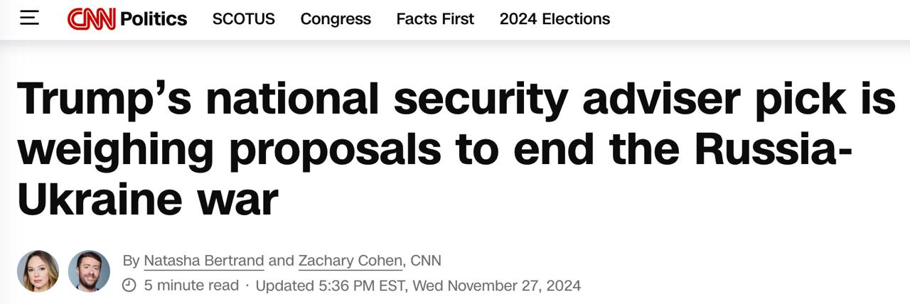 Будущий советник Трампа по нацбезопасности взвешивает несколько предложений по прекращению войны в Украине - CNN