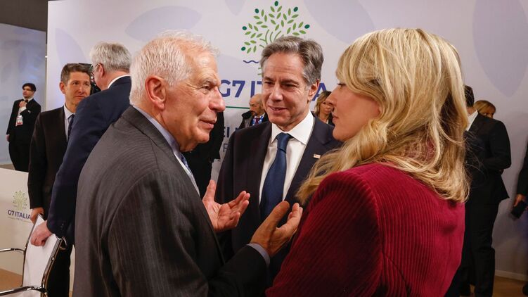 Боррель (слева) не уверен в перспективах помощи Киеву. Фото: x.com/JosepBorrellF