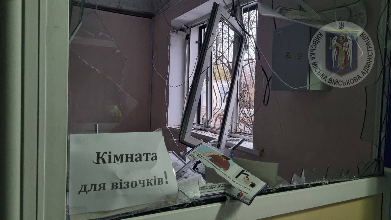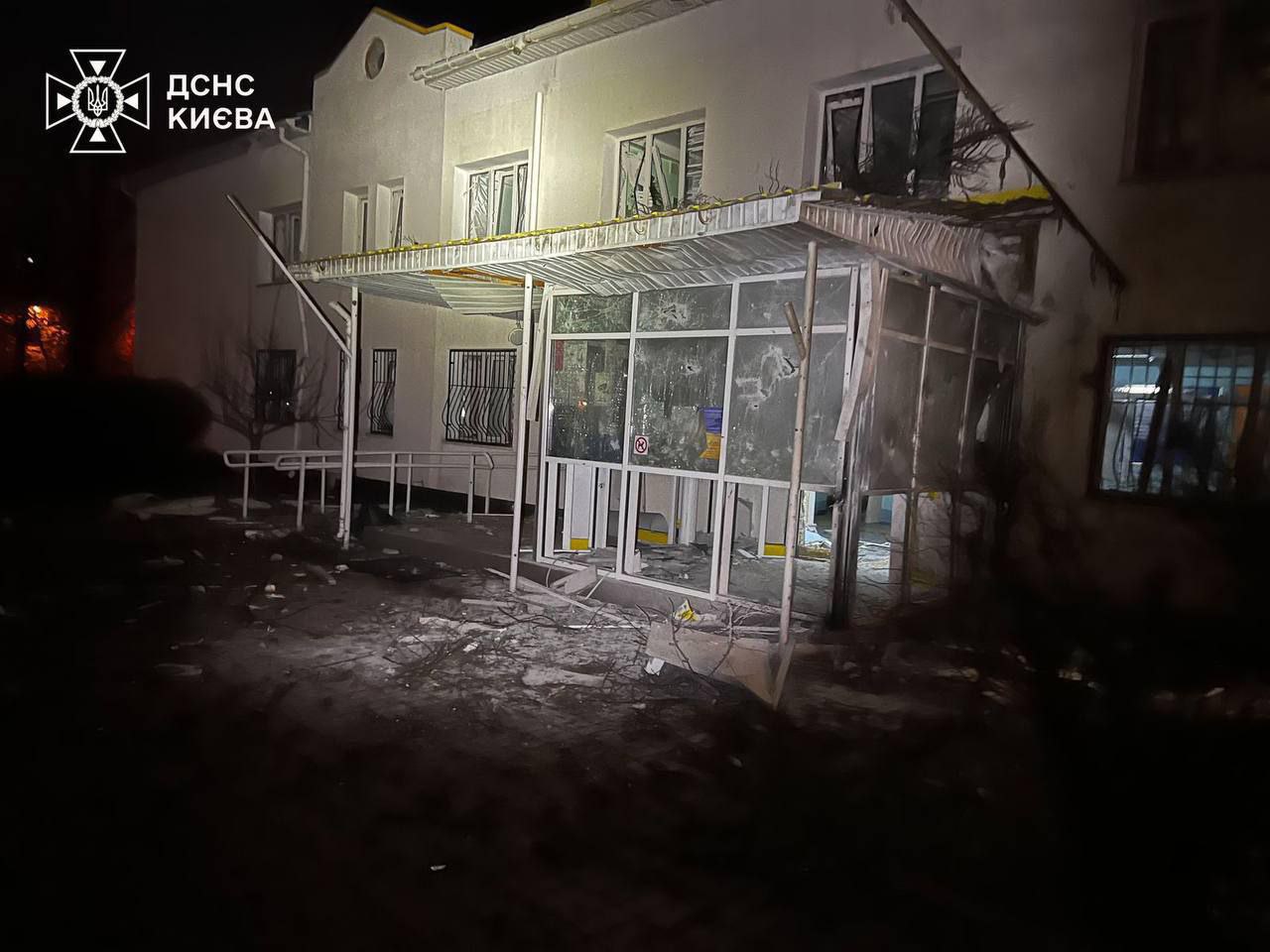 Сегодня ночью в Днепровском районе Киева в результате атаки российских беспилотников повреждено здание детской поликлиники.