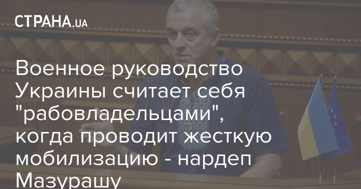 Военное руководство Украины считает себя "рабовладельцами", когда проводит жесткую мобилизацию - нардеп Мазурашу