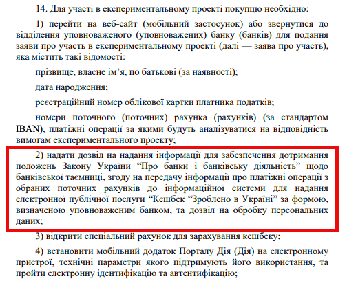monobank и другие финучреждения обязаны его соблюдать для участия в программе "Национального кешбэка". Происходит две вещи: предоставление украинцем банку права на раскрытие банковской тайны и ее фактическое раскрытие впоследствии. При этом банки ежедневно передают в общую информационную систему данные "обо всех платежных операциях по всем избранным покупателям текущим счетам, по которым ими предоставлено разрешение на предоставление информации".
