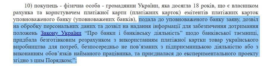 "Это требование Кабмина, оно прописано в соответствующем постановлении, и выполняется всеми банками-участниками без исключения, и Приватбанком в том числе. Без этого программа просто не могла бы функционировать. Иначе государство не смогло бы узнать, что человек купил в магазине товар конкретного нацпроизводителя, участвующего в "Национальном кешбэке", а не любой другой. Банк видит, что именно оплачивается, и передает государству эту информацию, а нашему клиенту впоследствии начисляется кешбэк", — объяснил пресс-секретарь Олег Серга.