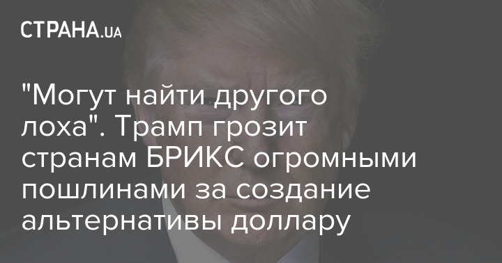 "Мы требуем от этих стран обязательства не создавать новую валюту БРИКС и не поддерживать никакую другую валюту, чтобы заменить могучий доллар США, иначе они столкнутся со 100%-ными пошлинами и должны будут попрощаться с продажами в замечательную экономику США. Они могут пойти и найти другого "лоха"! Нет никаких шансов, что БРИКС заменит доллар США в международной торговле, и любая страна, которая попытается это сделать, должна помахать Америке рукой", – пишет новоизбранный президент Соединенных Штатов.