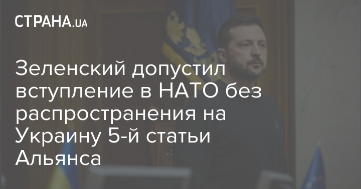 Президент Владимир Зеленский считает реальным вариант, когда Украина присоединяется к НАТО, но без распространения на нее 5-й статьи Альянса о коллективной самообороне.