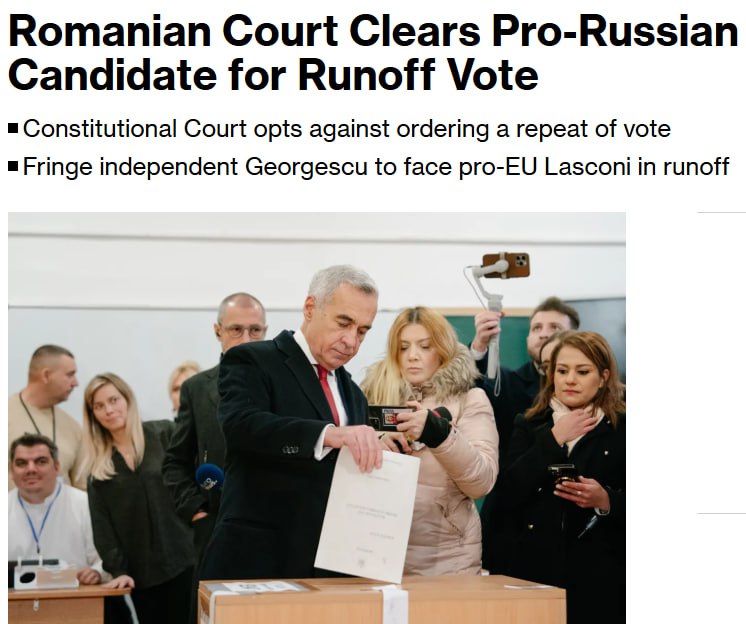 Результат первого тура выборов в Румынии утвержден: Конституционный суд решил не назначать повторное голосование.