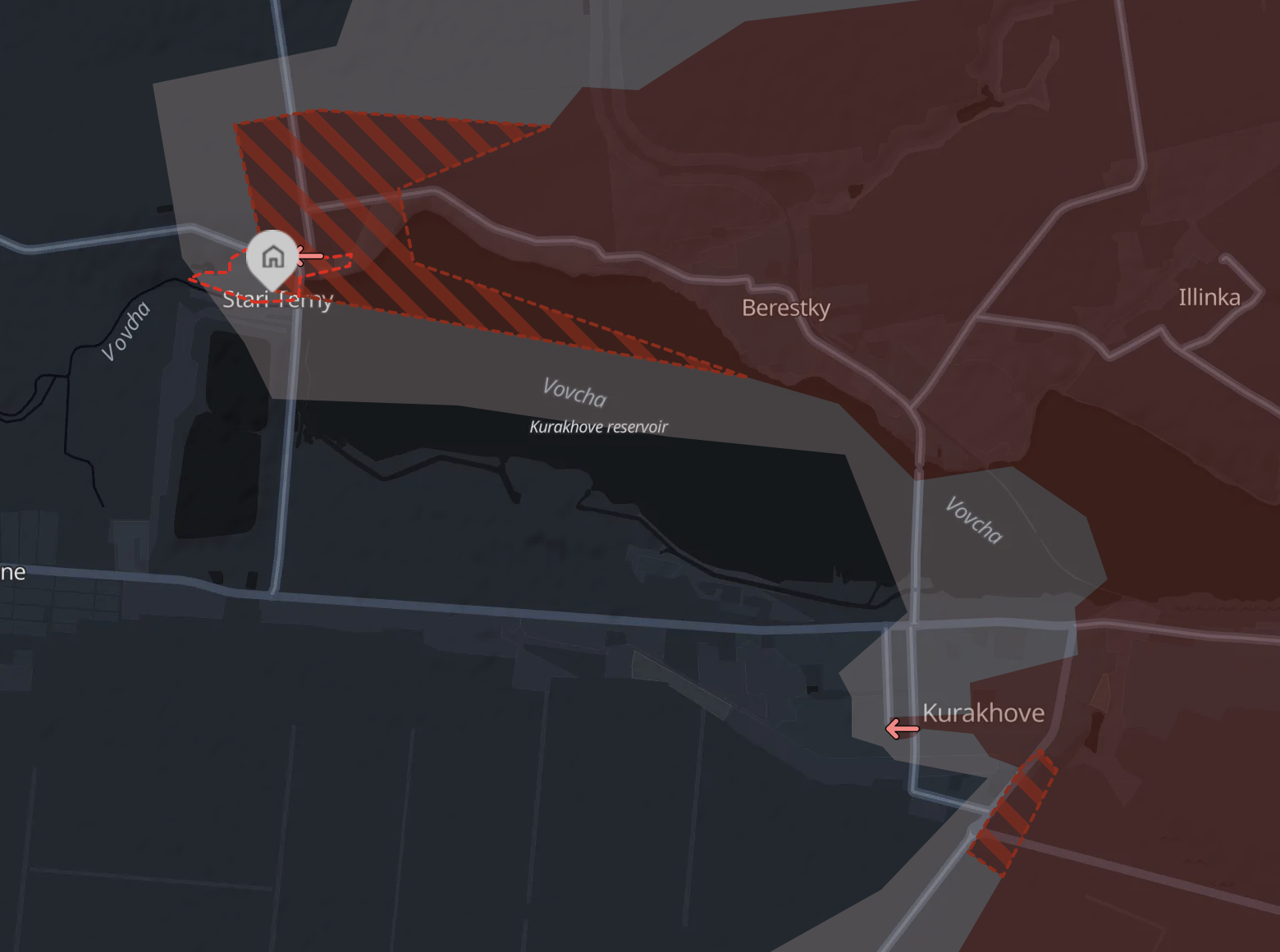 Как неоднократно писали украинские военные, падение Старых Тернов, которые выходят на дамбу Кураховской ТЭС, сделает крайне проблематичной оборону промзоны электростанции. С потерей промзоны само Курахово будет, скорее всего, потеряно.