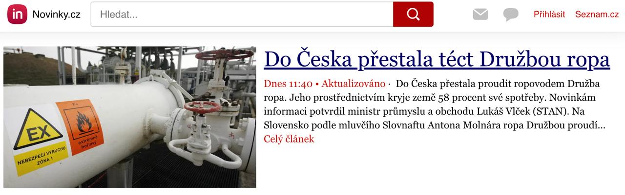 По заявлению компании Unipetrol, которая управляет двумя нефтеперерабатывающими заводами в Чехии, со стороны поставщика "произошла задержка поставок нефти", поступающей в Чехию по "Дружбе". Компания в профилактических целях попросила госуправление материальных резервов Чехии заранее согласовать возможные поставки нефти в кредит.