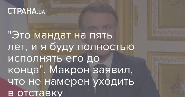 Президент Франции Эммануэль Макрон в обращении к французам заявил, что не намерен уходить в отставку и хочет до конца отработать свой второй пятилетний мандат на посту президента страны, который должен закончиться в 2027 году.