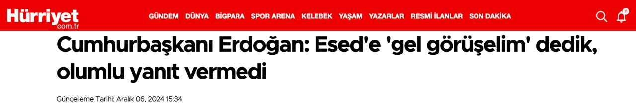 По словам Эрдогана, он предлагал Асаду переговоры, но тот на них не согласился.