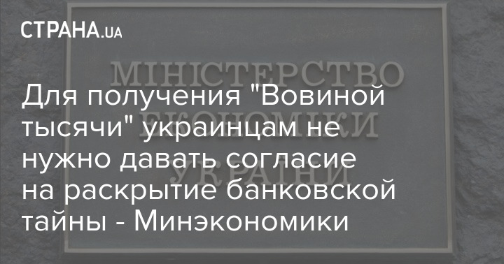 Для получения "Вовиной тысячи" украинцам не нужно давать согласие на раскрытие банковской тайны - Минэкономики