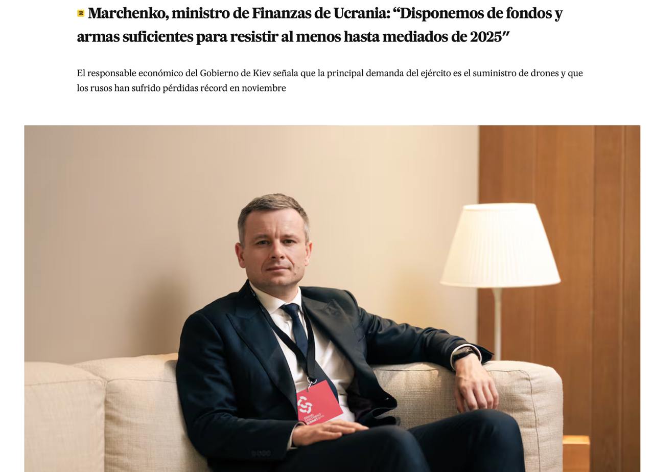 Об этом в интервью испанской газете El Pais заявил министр финансов Украины Сергей Марченко.