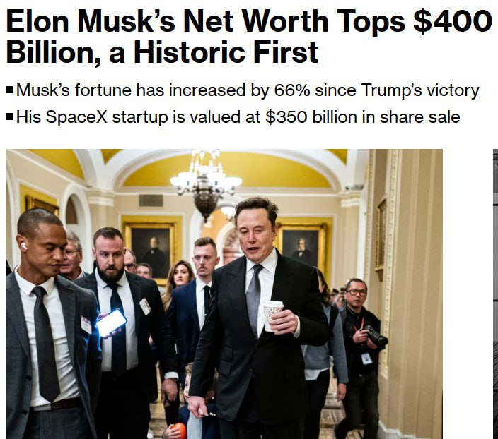 Илон Маск стал первым человеком в мире, чьё состояние больше $400 миллиардов - Bloomberg