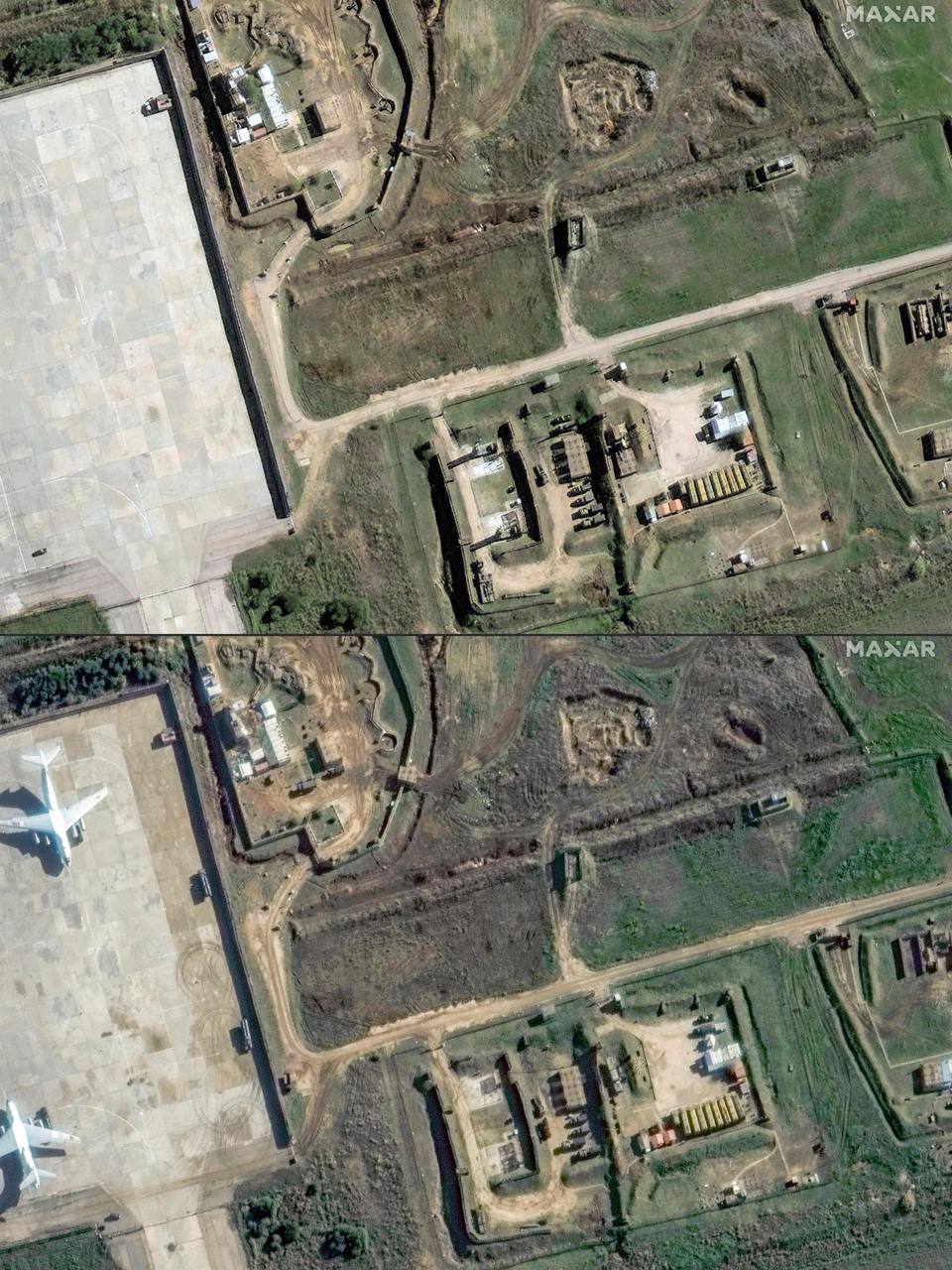 На фотографиях компаний Maxar Technologies видно, что на авиабазу Хмеймим прибыли два грузовых самолёта Ан-124, Ил-76, а также более мелкие грузовые модели – три Ан-32 и один Ан-72. У воздушных судов открыты носовые отсеки для приёма на борт тяжёлых грузов. Спутники также зафиксировали корабли РФ, идущие по Средиземному морю от берегов Сирии. Однако пока неясно, идёт ли речь о полном или частичном выводе российского контингента.