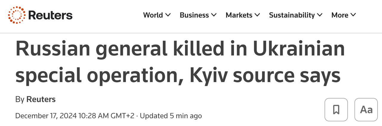 10.44 Российского генерала Кириллова в Москве ликвидировала СБУ, сообщает Reuters со ссылкой на источник в ведомстве.