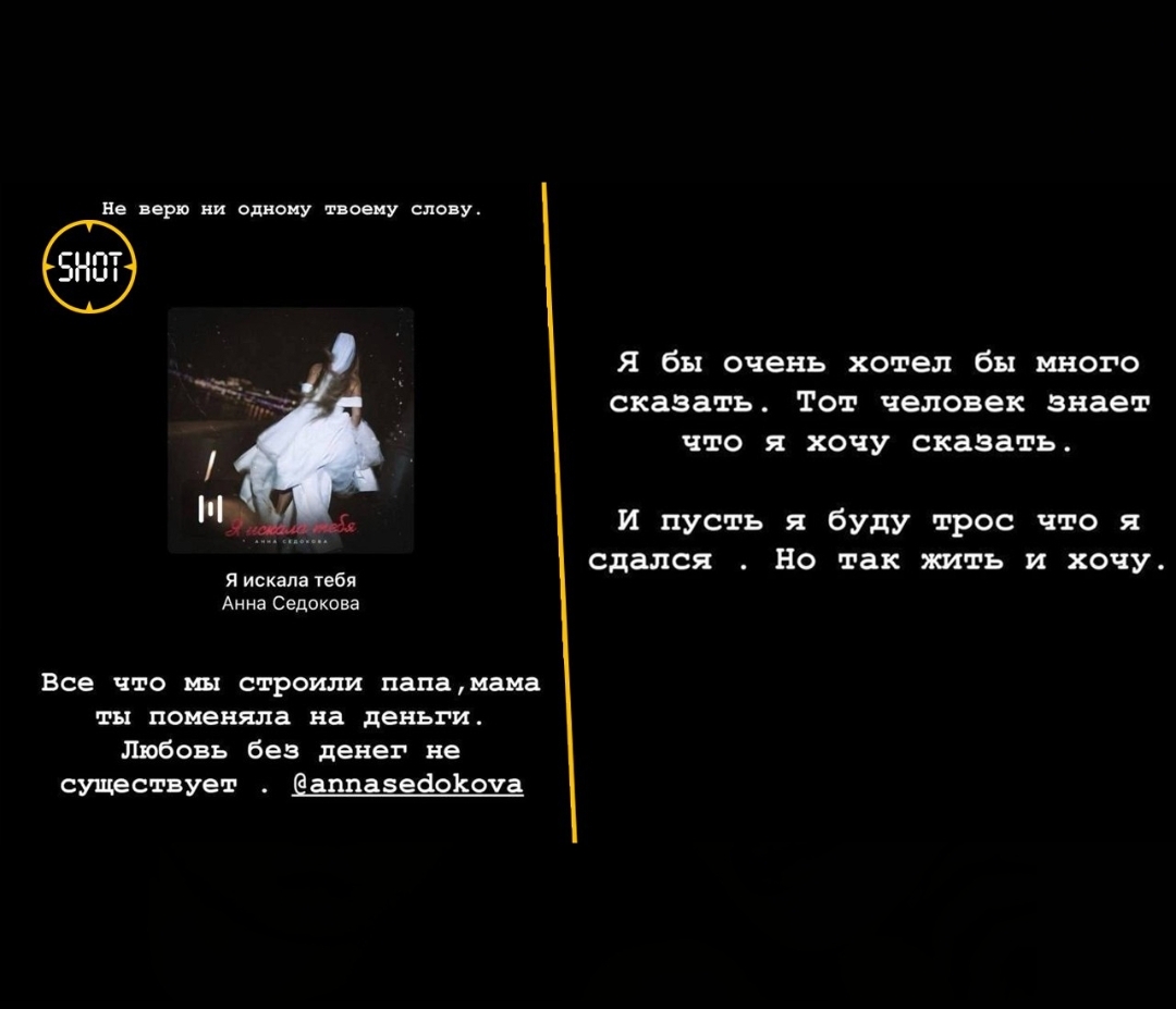 Незадолго до своей кончины баскетболист вёл грустные трансляции в Инстаграме под песни экс-супруги. Он обвинял её в том, что она променяла любовь на деньги, и угрожал, что может пойти на крайние меры, если у них не получится восстановить отношения.